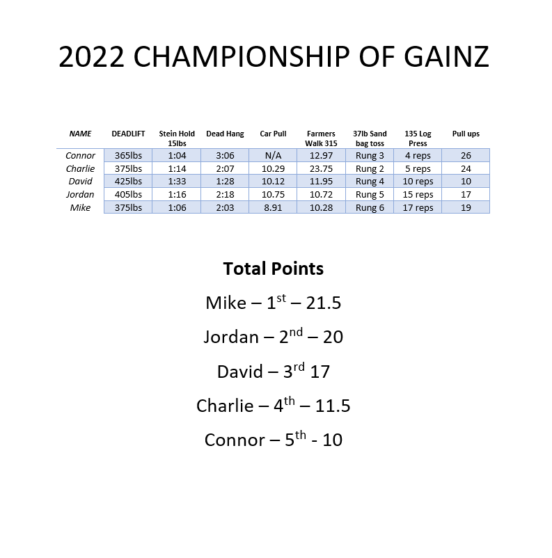 The 1st annual Championship of Gainz. Very happy to see that it became a tradition and has only grown in popularity.
